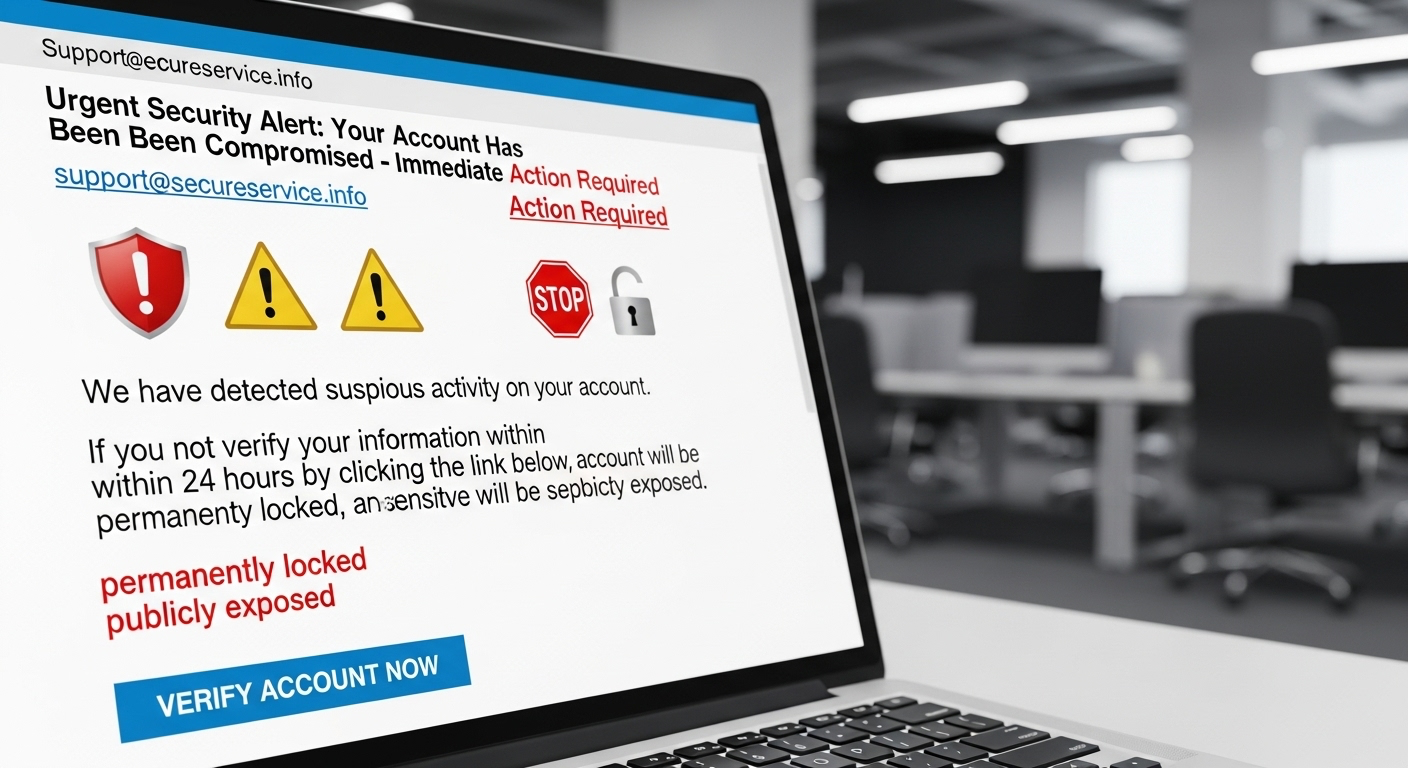 - Correos que aparentan ser de “soporte” o “auditoría” con amenazas, archivos adjuntos sospechosos o enlaces a “pruebas” de filtración.