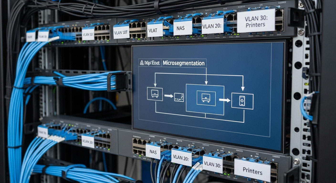 Día 4: Microsegmentación: coloca IoT/impresoras/NAS en VLANs aisladas, sin salida a Internet salvo listas blancas.