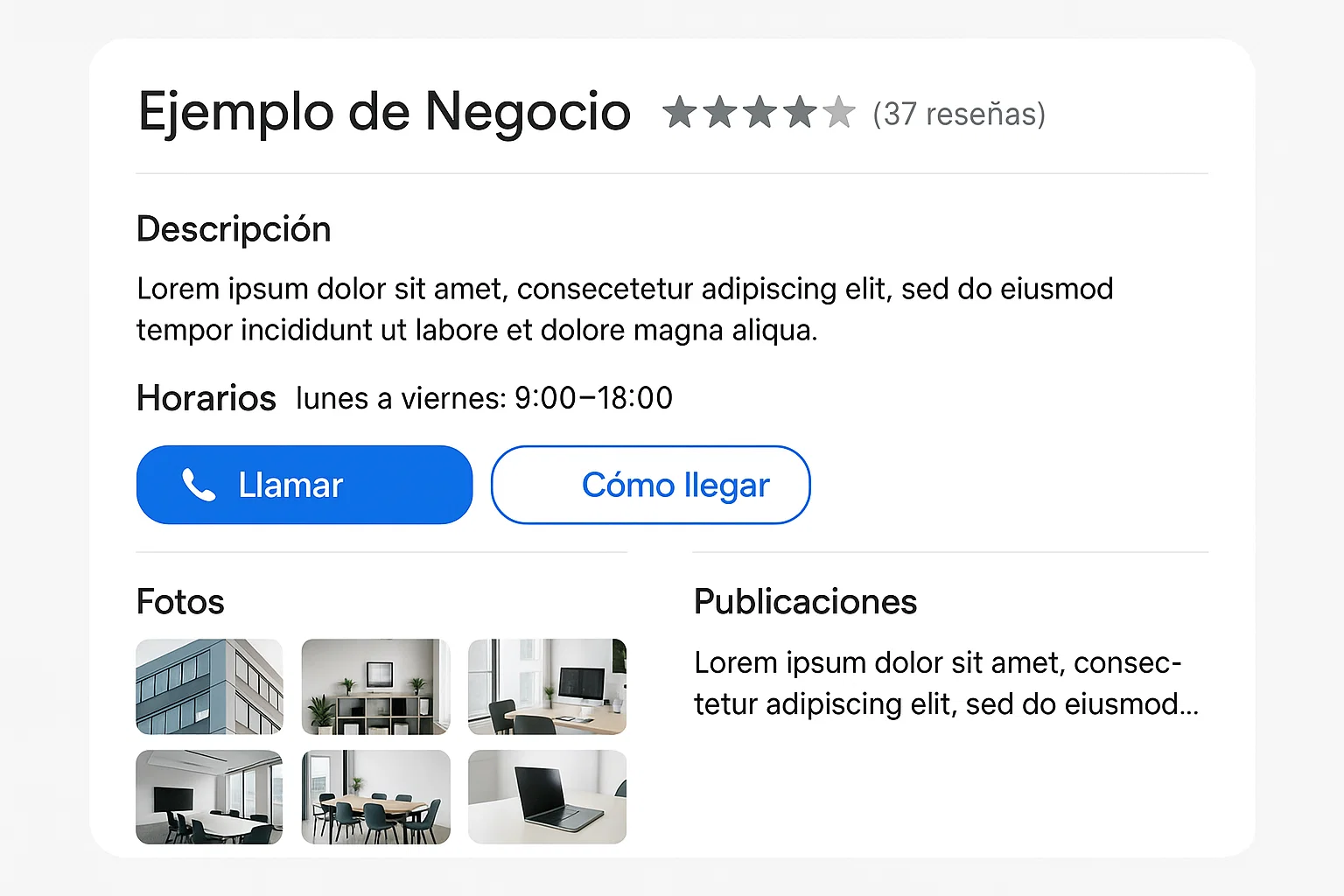 - Redacción de descripciones y Q&A de GBP.